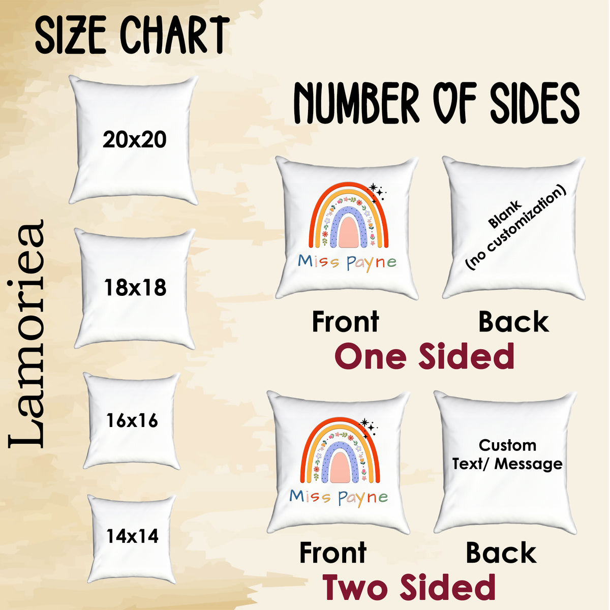 Introducing our Customized Teacher Rainbow Pillow, the perfect gift to show appreciation for your favorite educator. This vibrant and personalized pillow features a rainbow design, customized with the teacher's name or a special message. Made with high-quality materials, it's both decorative and comfortable, adding a cheerful touch to any classroom or home decor. Say thank you to your teacher in a unique and meaningful way with our Customized Teacher Rainbow Pillow!